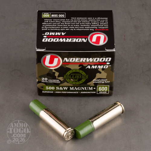20rds – 500 S&W Underwood 600gr. Wide Flat Nose Hard Cast Ammo