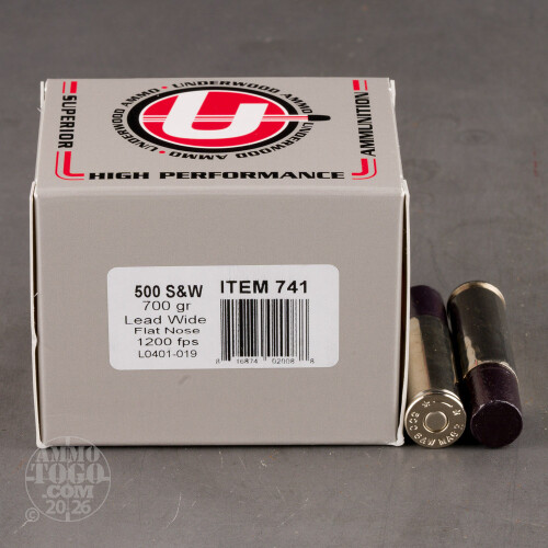 20rds – 500 S&W Underwood 700gr. Wide Flat Nose Hard Cast Ammo