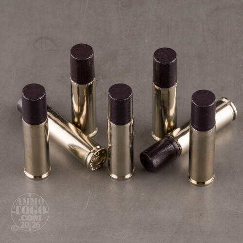 This round’s bullet is a 700 grain (1.6 ounce!) wide flat nose hard cast. Its nose profile is due to inflict a massively deadly wound channel without the need for terminal expansion, and its alloyed lead composition makes it hard enough to penetrate several feet deep into the toughest quarry’s body. The bullet’s Black Cherry polymer coating eliminates lead-on-bore contact, which does away with lead fouling and prolongs the barrel’s lifespan.