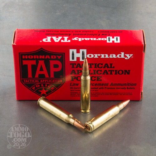 This package contains 20 rounds of Hornady LE TAP Barrier 5.56x45mm ammunition. Each round produces a muzzle velocity of 2503 feet per second and a muzzle energy of 765 foot pounds. This ammo is non-corrosive, reloadable, brass cased, and boxer primed.
