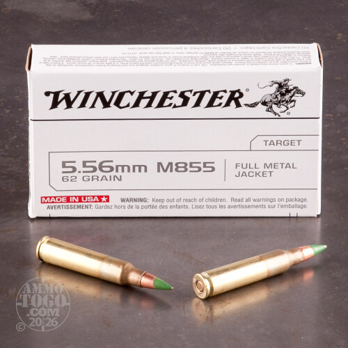 Winchester Ammunition 62 Grain Full Metal Jacket (FMJ) Ammo Details