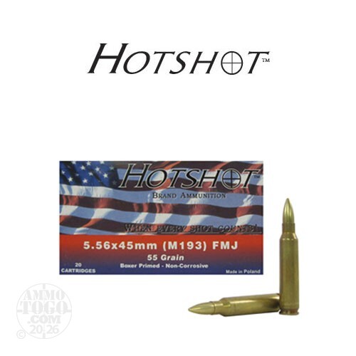 20rds - 5.56x45 Hotshot Ammunition M193 55gr. FMJ Ammo