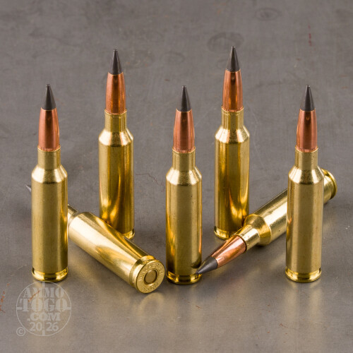 This cartridge owes its magnificent performance to the dual potency of its 140 grain Extreme Point bullet. Accuracy? Child’s play for so balanced and streamlined a flat base bullet, which encounters impressively little frontal air resistance thanks to the sleekness of its massive polymer tip. Takedown power? Yet another of the Extreme Point’s fortes, as it couples deep penetration with electrifyingly fast terminal expansion.