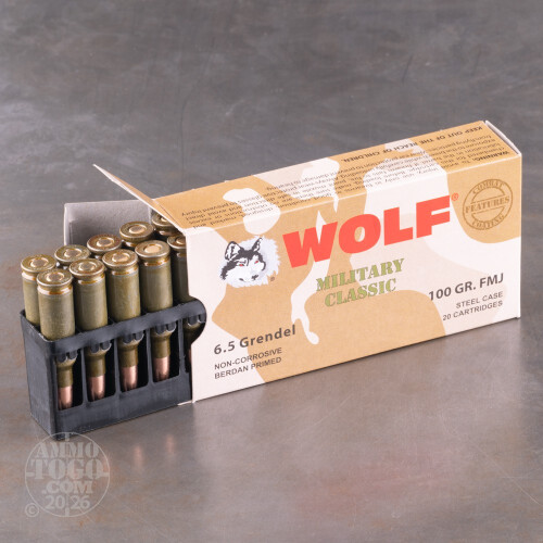 20rds – 6.5 Grendel Wolf Military Classic 100gr. FMJBT Ammo