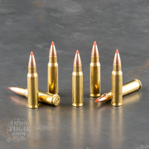 This 6.8 SPC cartridge from Hornady’s Custom line of ammunition features the Nebraskan manufacturer’s own 100 grain GMX projectile. The GMX is composed of a copper alloy that’s even stronger than pure copper. As such it creates very little bore fouling, is wholly compliant with California’s strict ammunition laws, and delivers no less than 95 percent weight retention while expanding up to 1.5 times its original diameter during penetration. The GMX sports a polymer tip, which both amplifies its accuracy and serves to initiate rapid expansion upon impact. This bullet’s accuracy is further bolstered by its long and sleek profile and its pressure relieving grooves.Hornady crafts their Custom ammunition to give you the performance of a handloaded cartridge right out of the box. Each of this round’s high quality components, including its select brass casing, non-corrosive primer, and specially formulated propellant are subjected to intense scrutiny before leaving their factory.