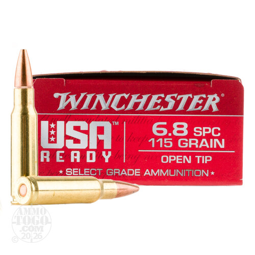 20rds – 6.8 SPC Winchester USA Ready 115gr. Open Tip Ammo