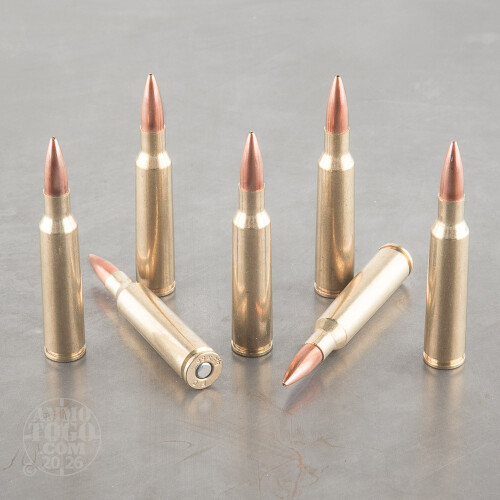 Leaving the muzzle at a velocity of 2625 feet per second, each round generates 1425 foot pounds of muzzle energy. This ammunition comes packed in 20-round boxes.