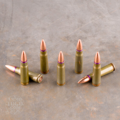 Red Army Standard makes some of the finest steel cased AK-47 ammunition on the market. For that reason it’s so popular that it’s a neat trick to find it on a brick and mortar store’s shelf -- snap it up if you can find it, or just rely on AmmoToGo.com to send it to your doorstep!This 7.62x39 round has got a 124 grain projectile. The bullet’s full metal jacket means it’ll feed with ease, and its boat tail raises its ballistic efficient to give it a nice and flat trajectory coupled with the ability to shrug off crosswinds. Nicely, this round wears a thin layer of purple military-grade sealant around its neck and non-corrosive Berdan primer. That along with its steel casing’s protective lacquering will see to it that this round stores reliably. Its low friction casing also feeds into and ejects from an AK just as you’d like to see as well!