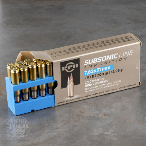 20rds – 7.62x51mm Prvi Partizan Subsonic 200gr. FMJBT Ammo Details