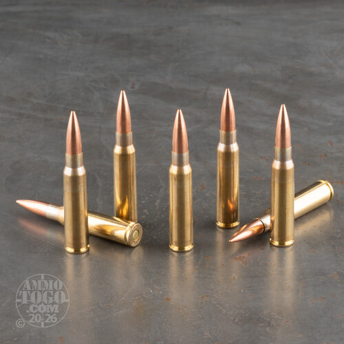 This ammunition is factory fresh, non-corrosive, boxer primed, and brass cased. Leaving the muzzle at a consistent velocity of 2723 feet per second, each round delivers a muzzle energy of 2284 foot pounds.