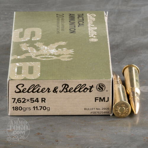 20rds - 7.62 x 54R Sellier & Bellot 180gr. FMJ Ammo Details
