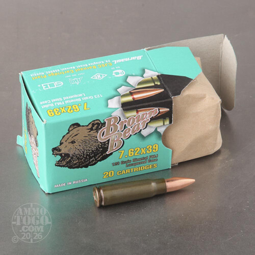 20rds - 7.62x39 Brown Bear 123gr. Polymer FMJ Ammo Details