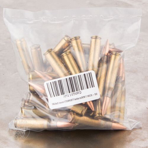This is a 7.62x51 NATO M118 Long Range 175gr. Sierra Matchking OTM Ammo. This round was specially designed for long range sniping by the U.S Army and manufactured in the Lake City Ammunition Plant. The round utilizes the Sierra 175gr. MatchKing bullet along with other high grade components to create an excellent long distance shooting round for competition as well as combat use. These rounds are brass cased, boxer primed, and non-corrosive. These rounds are packaged in 20rd. bags. Velocity: 2580 fps.