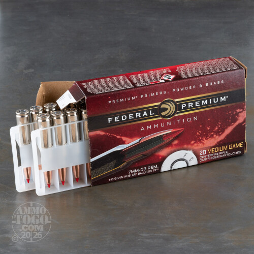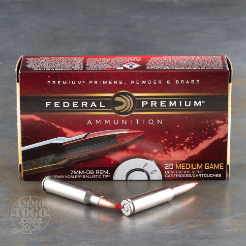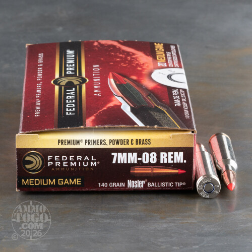 This is 7mm-08 Rem. Federal Vital-Shok 140gr. Nosler Ballistic Tip Ammo. Fast at 2800fps, and strong with 2437 ft-lbs, Federal Vital-Shok makes a great round. Match that with world-class brass, select powders and legendary primers and you get ammunition you can truly believe in. This ammo comes packed in 20rd. boxes.
