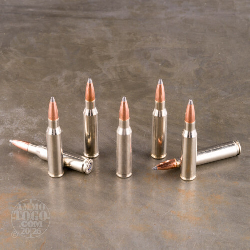 Few bullets have the repute that Nosler’s Partition enjoys -- and it enjoys it justifiably. This 7mm-08 Rem cartridge’s 140 grain projectile takes its name from the integral partition formed by its jacket that bisects its core into front and rear sections. The exposed front works alongside the jacket’s thin mouth to provide broad mushrooming at virtually any velocity to kill game fast; the rear retains more than two thirds of the Partition’s total weight to guarantee deep penetration as well as serve as the basis for said broad mushrooming. The Partition further features crimp locks that preserve its form under the stress of heavy chamber pressure.Federal is just the sort of manufacturer that can bring out the best in so capable a bullet. This round’s new and precisely formed brass casing seats its Partition like the king that it is, and its clean burning propellant load reliably produces a consistent chamber pressure for surprise-free performance.