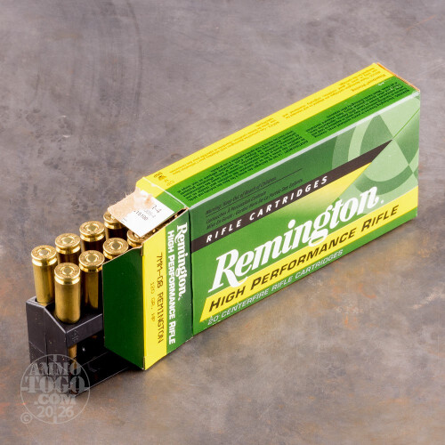 This package contains 20 rounds of Remington High Performance Rifle 7mm-08 Remington ammunition. Each factory fresh cartridge is loaded with a 120 grain hollow point projectile. These hollow points produce massive expansion to carve a wide wound channel in soft tissue, making them ideal for hunting whitetails and other similarly sized game animals.