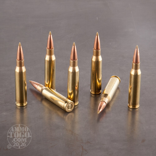You get 20 rounds of 7mm-08 Remington ammunition capable of producing quick, humane, and recoverable kills. Each factory fresh cartridge is loaded with a 140 grain projectile that leaves the muzzle at a velocity of 2860 feet per second with 2542 foot pounds of energy. This ammunition is 100 percent non-corrosive, boxer primed, and features high-quality, reloadable brass cases.