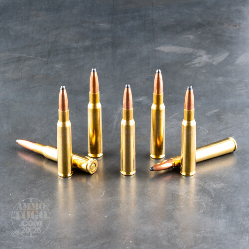 Perfect for all but the largest, most dangerous game, this ammunition delivers a muzzle velocity of 2657 feet per second and a muzzle energy of 2175 foot pounds. Each package contains 20 rounds of factory fresh, non-corrosive ammunition that is boxer primed, brass cased, and fully reloadable.