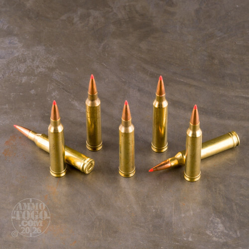 This 7mm Rem Mag cartridge from Hornady’s Superformance label sports a 139 grain GMX projectile, a hard hitting and deep penetrating bullet that’ll drop pretty much any critter you could issue it toward. The monolithic GMX is made completely out of copper alloy, so it’s not only a safe bet if you’re hunting in California and want to avoid an awkward chat with the game warden, but also possesses no jacket and core that are capable of separation, meaning it delivers stellar weight retention.The accurate GMX has a sleek profile that is complemented by its crimping cannelure and pressure relieving grooves. As the result exhibits very little drag while in flight, and also causes very little bore fouling. The GMX’s tip even further heightens its ballistic coefficient, and also serves to initiate expansion up to 1.5 times its original diameter upon impact. With its high quality casing and primer, you’ll be able to keep this round alive for many hunts to come.