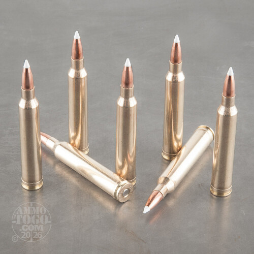 This is 7mm Shooting Times Westerner Nosler Trophy Grade 160gr. AccuBond Ammo. Nosler AccuBond bullets feature unique white polymer tips that prevent deformation in the magazine, boost aerodynamic efficiency, and initiate expansion. This bullet also features a precisely formed boat tail that serves to reduce drag and provide a more efficient flight profile for higher retained energy at long range. Nosler’s proprietary bonding process eliminates all possibility of component separation resulting in 60-70% weight retention. This ammo is brass cased, boxer primed, and non-corrosive. Muzzle velocity of 3075fps. This ammo comes packed 20rds per box.