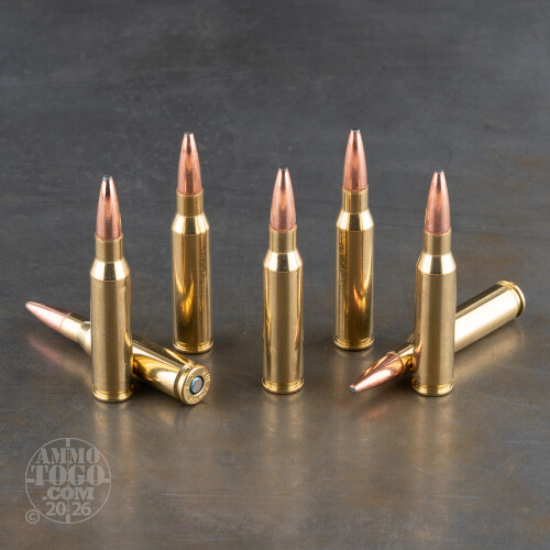 This 7mm-08 Rem cartridge from Federal’s Fusion line of ammunition features a 140 grain Fusion soft point projectile. The bullet takes its name from how its perfectly uniform jacket is electrochemically fused to its core: Because the two are so well united, they are virtually incapable of separation during penetration. The bullet’s core is formed under high pressure, both strengthening it and allowing practically no deviation in its weight so that it may deliver consistent results in flight.The Fusion SP features a boat tail design, the tapered base of which improves its ballistic coefficient to give it a flattened trajectory, greater retained velocity downrange, and higher momentum upon impact. Its exposed lead core is complemented by its skived tip, which essentially pre-programs the fashion in which it widely expands. The accuracy and predictability with which this round performs makes it an effective and not altogether terribly expensive solution for hunting whitetail.