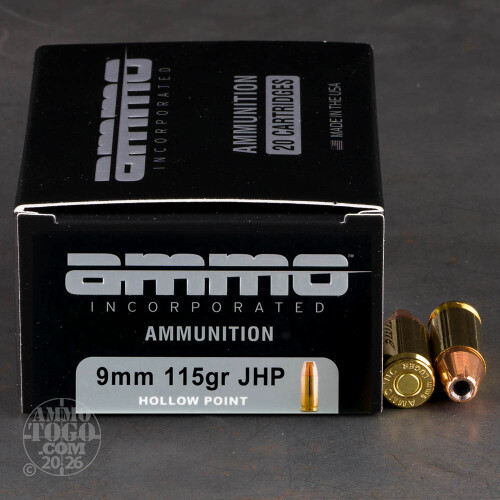 20rds – 9mm Ammo Inc. 115gr. JHP Ammo