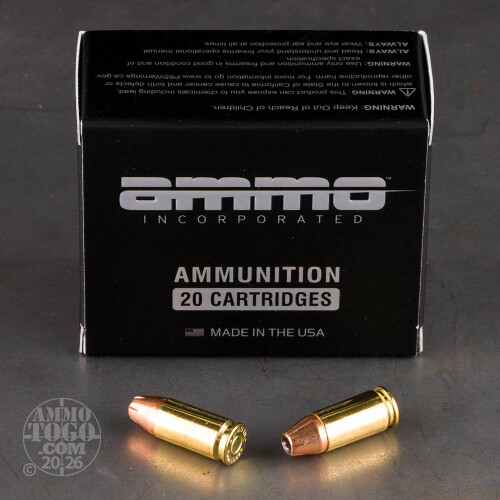 Looking for a box of 9mm ammo for personal protection? Ammo Inc. doesn’t just offer a trustworthy solution for self-defense – their cartridges are assembled in the USA with premium components that are made out of high-grade raw materials. Settle for no less when your life’s on the line!A 9mm round with a 115 grain bullet is going to give a pistol a supersonic muzzle velocity. That means this ammo’s plenty noisy, and it follows up that crack with a flat and accurate trajectory. The jacketed hollow point is precisely the bullet you want for terminal protection. Its nose cavity and notched jacket produce wide and rapid terminal expansion, which deals accented damage to soft tissue while simultaneously reducing the chance of overpenetration that could harm an innocent bystander.