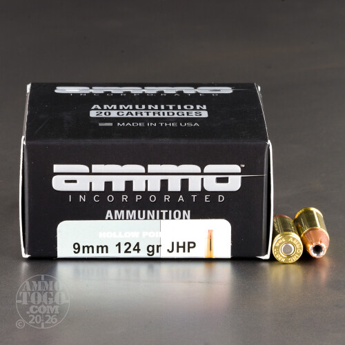 20rds – 9mm Ammo Inc. 124gr. JHP Ammo
