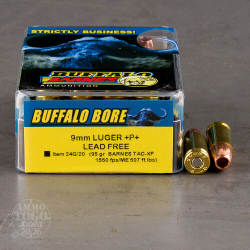 20rds - 9mm Buffalo Bore 95gr. TAC-XP +P+ Lead Free Ammo