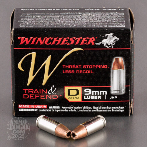 20rds - 9mm Luger Winchester W Train and Defend 147gr. JHP Ammo