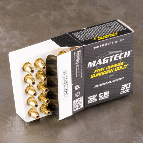 This package contains 20 rounds of Magtech Guardian Gold 9mm Luger (also known as 9x19mm Parabellum) ammunition. Each round is loaded with a 115 grain jacketed hollow point projectile. Providing powerful energy transfer, optimal penetration, impressive terminal expansion, and reliable pinpoint accuracy, these Magtech Guardian Gold loads are the perfect self-defense option for the budget conscious shooter.
