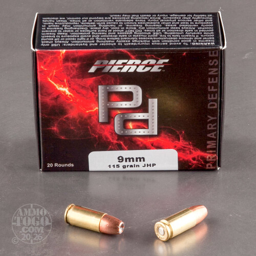 20rds - 9mm Pierce 115gr. JHP Ammo
