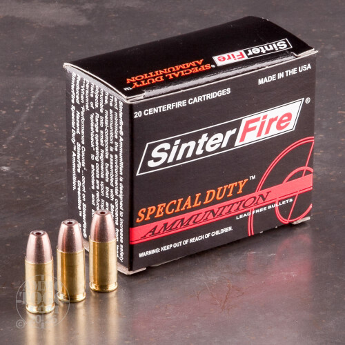 This 9mm Luger ammunition from SinterFire is an innovative frangible load designed to serve in a self-defense role. Each round fires a 100 grain hollow point bullet at a high velocity that produces strong expansion and rapid incapacitation in an attacker but disintegrates upon contact with hard surfaces to avoid ricochets. In some environments like apartment buildings or condos, this is a particularly good choice! SinterFire ammo is loaded in Kersey, Pennsylvania and uses non-corrosive primers and brass cases.-