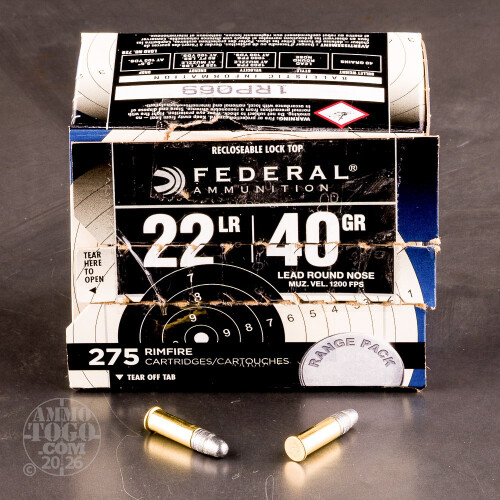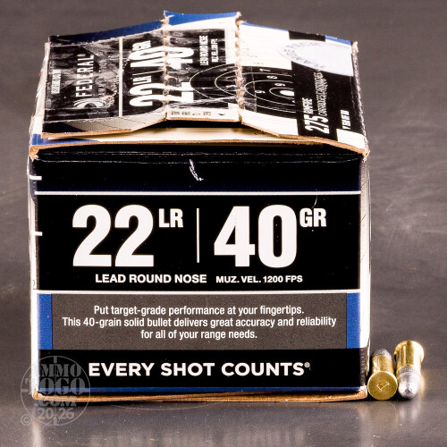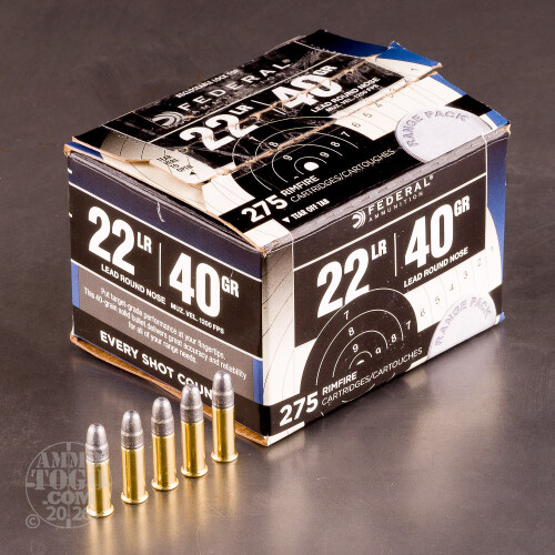This bulk package contains 2750 rounds of Federal .22LR ammunition engineered especially for the target range. Each rimfire cartridge is loaded with a 40 grain lead round nose (LRN) projectile, making it a perfect option for paper, cardboard, or metal targets. An excellent choice for the high-volume target shooter, this ammunition allows you to sight in and practice with your .22 rifle or handgun with a load that performs almost identically to Federal's .22LR 38-grain hollow point field loads. The ballistic performance of these two loads eliminates the need for sight adjustment when switching between your range and hunting loads.