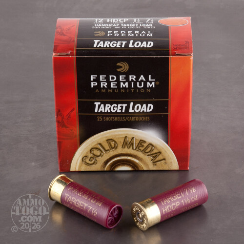 This is 12 Gauge Federal Premium Handicap Target Load 2 3/4" 1 1/8oz. #7 1/2 Shot Ammo. Federal Gold Medal produces consistent results for trap shooters who take their sport seriously. Federal’s renowned 209A primer provides perfect ignition when it really counts. Gold Medal Handicap is loaded to a higher velocity of 1235 feet per second for outstanding clay breaking prowess. This ammo comes packed in 25rd. boxes and 250rds. to a case.