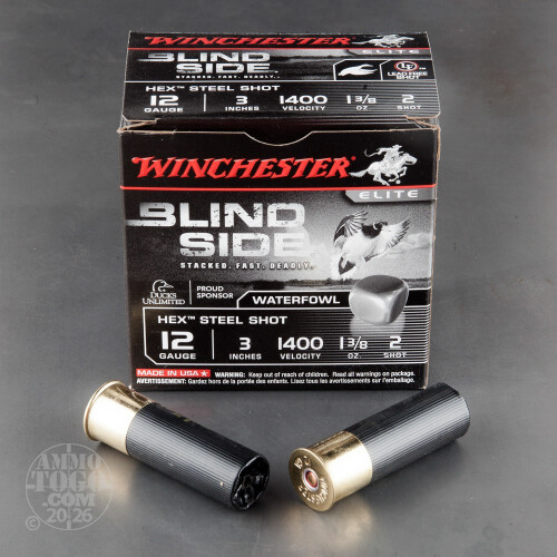 250rds – 12 Gauge Winchester Blind Side 3" 1-3/8oz. #2 Steel Shot Ammo Details