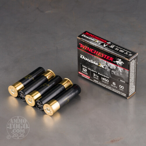 This is 12 Ga. Winchester Supreme High Velocity 3 1/2" 15 Pellet 00 Copper Plated Lead Buckshot Ammo. For superior buckshot performance, you can't beat the stopping power of Winchester Supreme buckshot loads. Copper Plated Hard Shot, Grex Buffering, Custom Blended Powders, Consistent, High-Velocity Payload. Suggested for predators and personal defense applications. Muzzle velocity of 1450fps. It comes packed in 5rd. boxes.