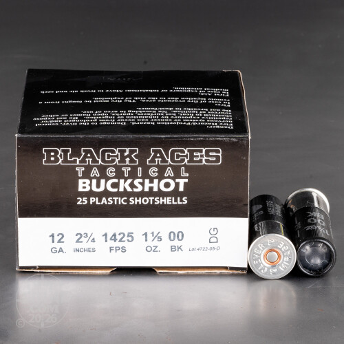 250rds – 12 Gauge Black Aces Tactical 2-3/4" 1-1/5oz. 00 Buck Ammo