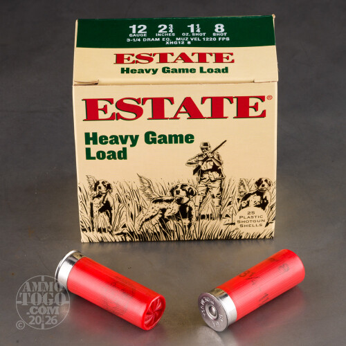 250rds – 12 Gauge Estate Heavy Game Load 2-3/4" 1-1/4oz. #8 Shot Ammo