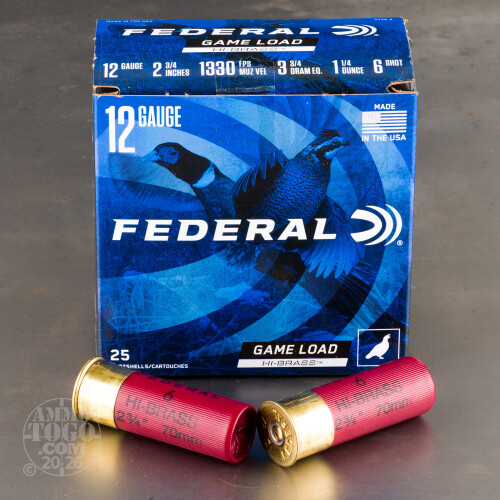 250rds – 12 Gauge Federal Game Load Upland Hi-Brass 2-3/4" 1-1/4oz. #6 Shot Ammo Details