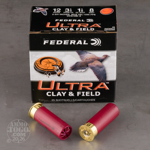 250rds – 12 Gauge Federal Ultra Clay & Field 2-3/4" 1-1/8oz. #8 Shot Ammo Details