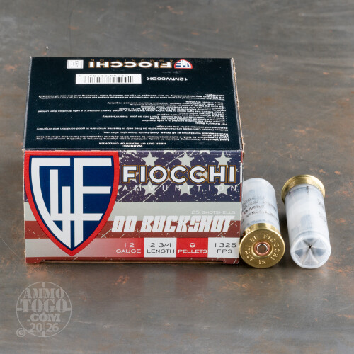 250rds – 12 Gauge Fiocchi 2-3/4" 9-Pellet 00 Buckshot Ammo Details