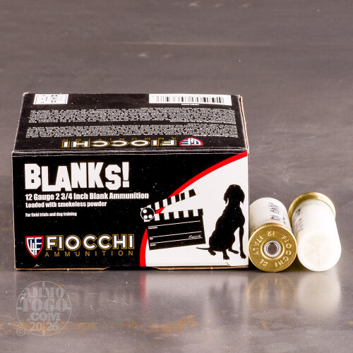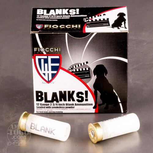 This is 12 Gauge Fiocchi 2 3/4" Blank Ammo. Fiocchi 12 Gauge Blanks are great for reenactments, ceremonies, training exercises and hunting dog training. These rounds provide the noise and realism of conventional ammunition without the projectile. These shotshells have primer and powder loaded in a crimped and sealed black hull shotshell, but no shot. Use safety precautions when using blank ammunition. This ammo comes packed in 25rd. boxes.