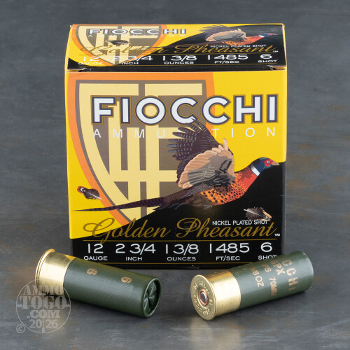 250rds – 12 Gauge Fiocchi Golden Pheasant 2-3/4" 1-3/8oz. #6 Shot Ammo Details