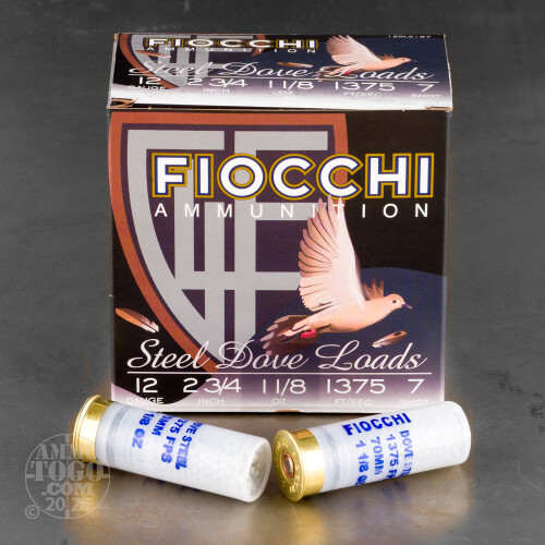 250rds – 12 Gauge Fiocchi Steel Dove 2-3/4" 1-1/8oz. #7 Steel Shot Ammo Details
