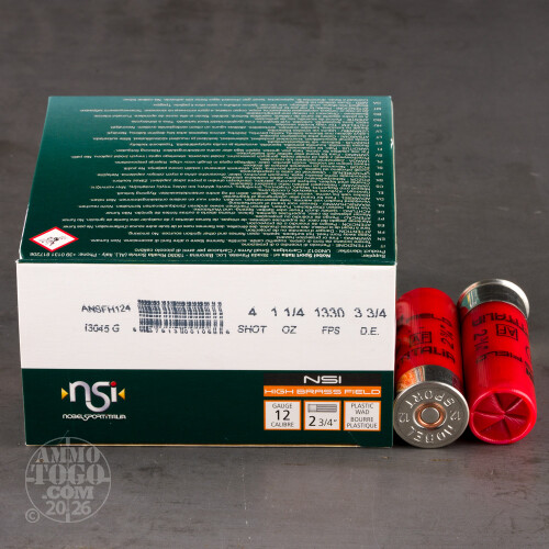 250rds - 12 Gauge NSI High Brass Field 2 3/4" 3 3/4 Dram 1 1/4 oz. #4 Shot Ammo