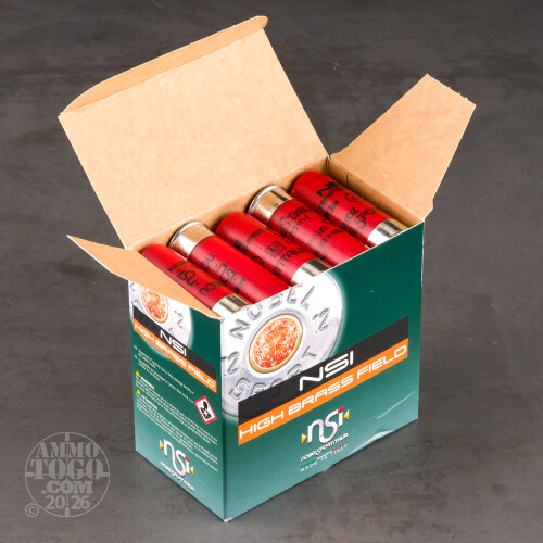 250rds - 12 Gauge NSI High Brass Field 2 3/4" 3 3/4 Dram 1 1/4 oz. #4 Shot Ammo Details