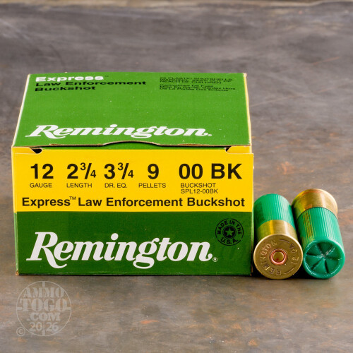 250rds – 12 Gauge Remington Express Law Enforcement 2-3/4" 9 Pellet 00 Buckshot Ammo Details