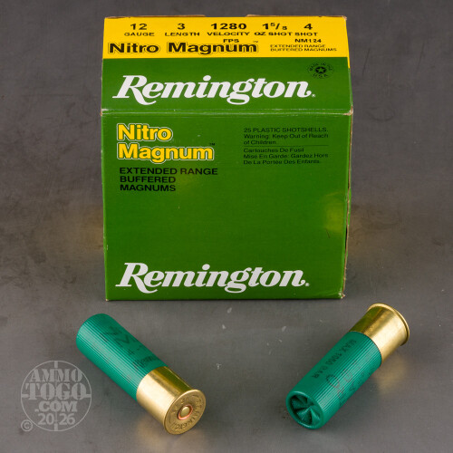 250rds - 12 Gauge Remington Nitro Magnum 3" 1 5/8oz. #4 Shot Ammo Details