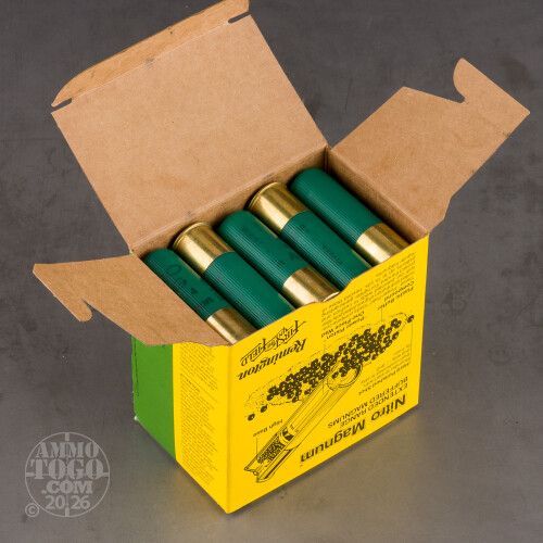 Perfect for the shooter who likes to stock up, this package contains 250 rounds of Remington Nitro Magnum 12 gauge ammunition. Each new production 3-inch shotgun shell is loaded with 1 5/8 ounces of specially hardened #4 lead shot. Each round produces a consistent muzzle velocity of 1280 feet per second.